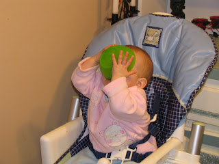 I recently read that clapping is a milestone so I decided that we should be clapping more. She totally understands what it means when I say, "Pat a cake". Today is the first day that she has done it by herself and she is so proud too. She showed Daddy when he came home and didn't want to stop.